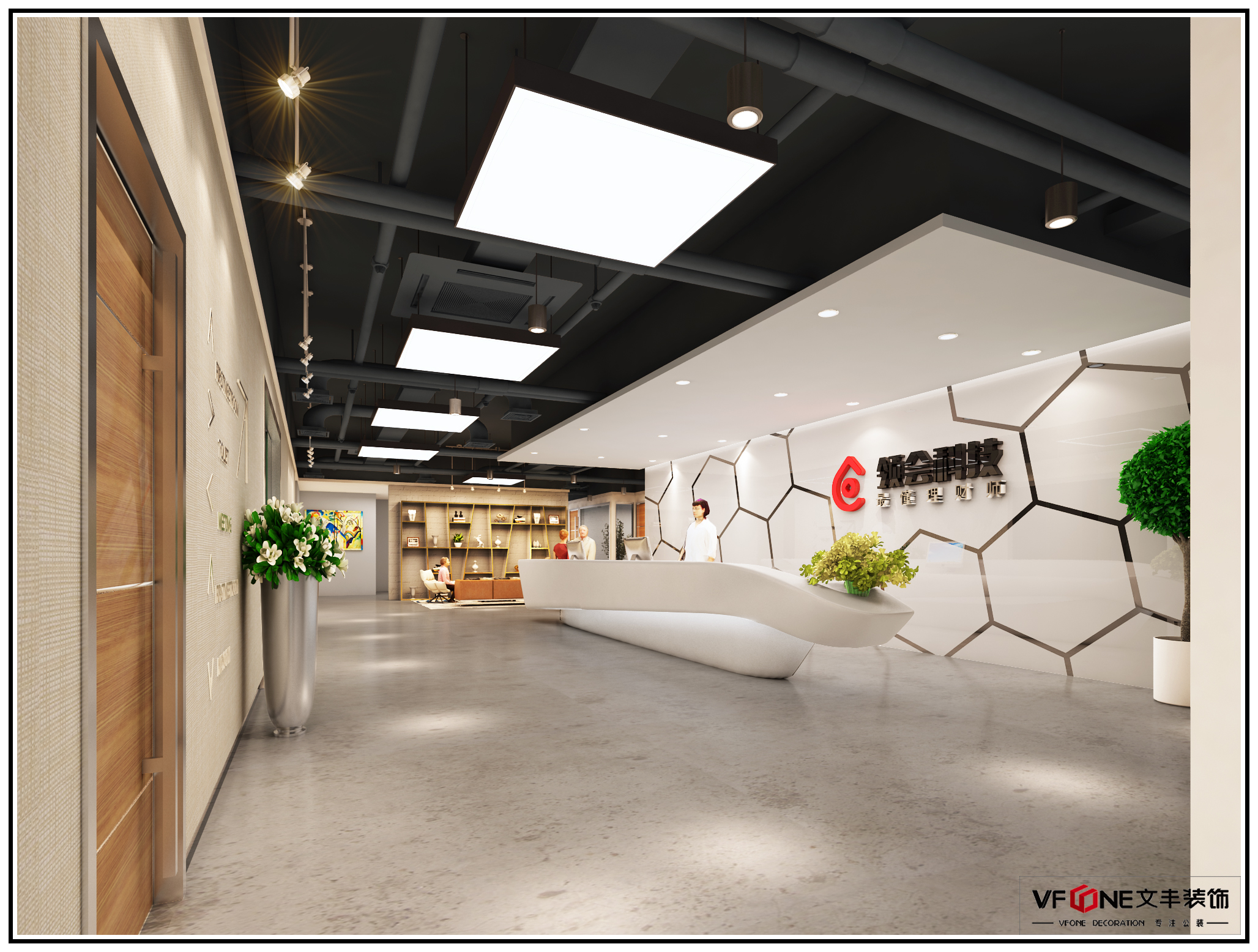 - 公司前臺設(shè)計方案-數(shù)字產(chǎn)業(yè)園展廳設(shè)計效果圖方案-深圳文豐裝飾